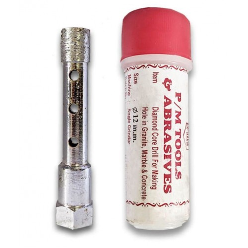 P/M TOOLS & ABRASIVES(PMT) Material: Diamond Type: Diamond Core Drill For Making Gole in Granite, Marble & Concrete, Size: 12mm Machine: Angle Grinder Suggestion: Use it with water to cool down