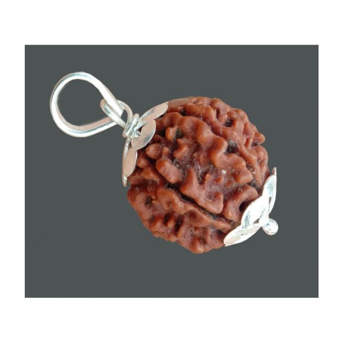 Lab Certified Brown 6 Mukhi/ 6 Face Nepali Rudraksha Silver pleted White Metal Pendant,Locket with Red Thread Natural & Real Mantra Siddha Rudraksha