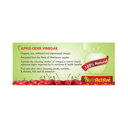 Nutractive Apple Cider Vinegar is 100% natural, raw unfiltered & unpasteurized retaining the natural residue and goodness as a mother of vinegar with its richness in natural components. NutrActive is made from the juice of delicious Himalayan apples fermented to 5% for better digestive properties. Nutractive ACV is full of potent antioxidants, vitamins, minerals & enzymes and is enjoyed by many as a nourishing tonic, culinary wonder and household must-have for its unique alkalizing properties. It is also used as flavoring agent and for various health benefits such as healthy immune system, improved digestion, weight management, improved cardiovascular health, detoxification & cleansing. Nutractive ACV improves satiety or feeling of fullness and helps manage weight whilst maintaining healthy digestion. When paired with healthy nutrition and exercise. Nutractive ACV assists in whitening teeth and removing bad breath. ACV to be useful for diabetics with type 2 diabetes in lowering blood sugar levels.