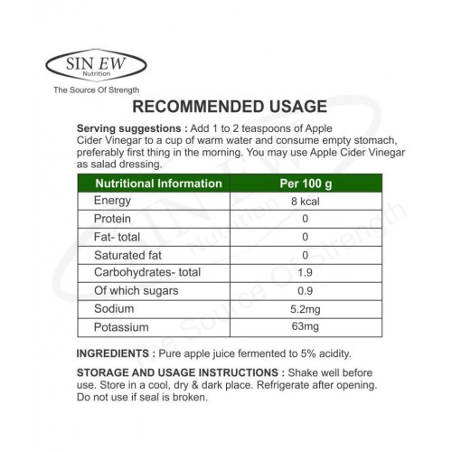 Brand "Sinew Nutrition" is owned by Healthgenie & it will be 100% authentic if bought online from company "Healthgenie India". The product comes with a 3D hologram, to further ensure that there is no chance of adulteration. Sinew Apple Cider Vinegar is a refined vinegar. It is a concoction of cider vinegar with herbs and spices. You can use it for making numerous delicious preparations. Make a quick dressing mixing olive oil, cider vinegar , a little bit of sugar and herbs. It has a tangy, fruit taste to it . You can consume it the way you want. It is best used when making fruit chutney as it softens the fruit when added while cooking.