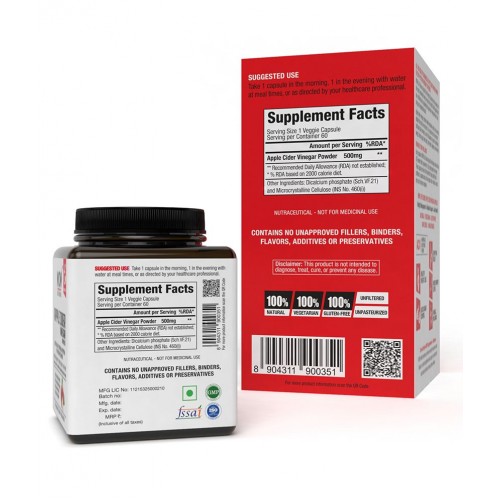 WOW apple cider vinegar capsules are the easiest and the most convenient way to enjoy all the health friendly goodness of raw, unfiltered and unpasteurized apple cider vinegar. Apple cider vinegar contains health restorative acetic acid, minerals, soluble fibre and live enzymes. It is a popular and time-honoured traditional folk remedy which has been used since a long time to optimize weight, lood sugar, heart health, joints, digestion and immunity.