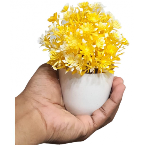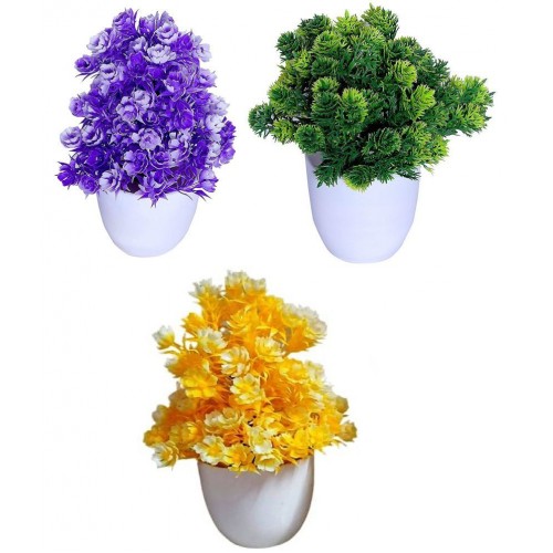 PUHUHP Set of 3 Artificial Beautiful Cute Mini Flower Plants with Pot for Home Decor Washroom and Office Decor Christmas Diwali and Festive Decoration Pack of 3 (Green-Blue-Yellow)