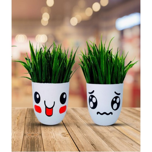 NEKI Artificial Plant with Pot Combo Set of 2 Unique Design for Home , Office, Shop, Balcony Garden Decoration (~10 cm, Green, ) Wild Artificial Small Plant with Pot
