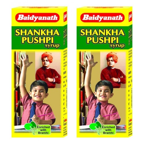 Baidyanath Shankhapushpi Syrup is an all-natural herbal preparation. . Shankhapushpi Syrup contains Shankhpushpi and Brahmi, both are known for their memory improve power.