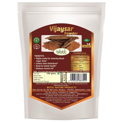 Vijaysar powder is highly for lowering Blood sugar level. It lowers total cholesterol. Vijaysar powder is Good for dental health. It reduces excess fat.