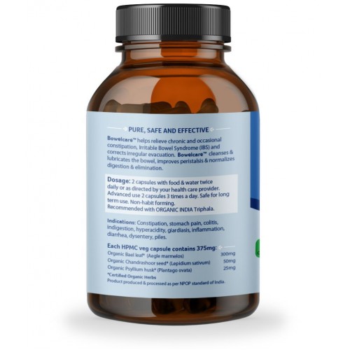 ORGANIC INDIA Bowelcare Capsules - Relieves Constipation & Irritable Bowel Syndrome helps relieve chronic and occasional constipation, Irritable Bowel Syndrome (IBS) and corrects irregular evacuation. Bowelcare™cleanses & lubricates the bowel, improves peristalsis & normalizes digestion & elimination.