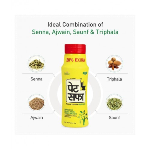 A Natural Constipation Reliever : Pet Saffa Natural Laxative Granules is an Ayurvedic based formula to help in relieving from constipation, conditioned constipation by promoting digestive secretions, bulk & regular bowel formation.