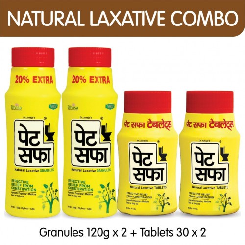 Pet Saffa Natural Laxative Granules 120gm (Pack of 2) + 30 Tablets (Pack of 2) Combo Pack (Helpful in Constipation, Gas, Acidity, Kabz), Ayurvedic Medicine