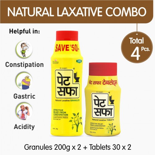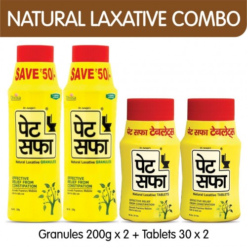 Pet Saffa Natural Laxative Granules 200gm (Pack of 2) + 30 Tablets (Pack of 2) Combo Pack (Helpful in Constipation, Gas, Acidity, Kabz), Ayurvedic Medicine
