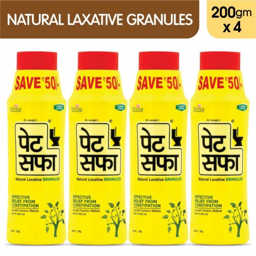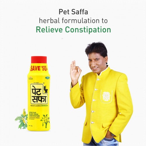 Pet Saffa, Natural Laxative Granules is the Ayurvedic based formulation to help in maintaining regular bowel movements to ensure proper cleansing of the body. Ayurvedic Pet Saffa is developed under stringent quality parameter with scientifically woven classical formulation to help in relieving from constipation.