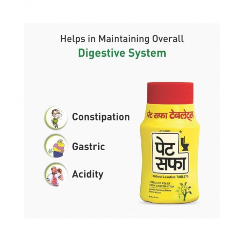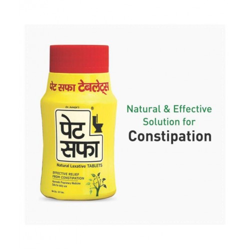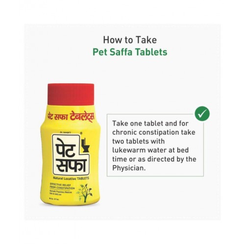 Sedentary life style, lesser bodily activity, changes in usual diet, irregular eating habits, junk food etc are the various reasons behind constipation. Pet Saffa Natural Laxative Tablet is 100 % Ayurvedic formulation that helps to relieve from chronic constipation. It is developed under stringent quality parameters with scientifically woven classical formulation helpful in maintaining regular bowel movements to ensure effective cleansing of body.