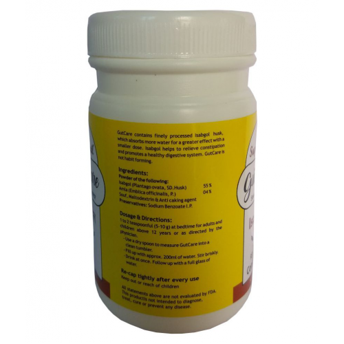 GutCare contains finely processed Isabgol husk, which absorbs more water for a greater effects with a smaller dose. Isabgol helps to relieve constipation and promotes a healthy digestive system. Gutcare is not habit forming.