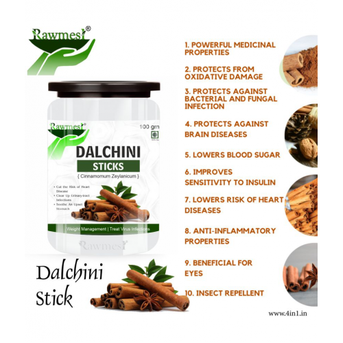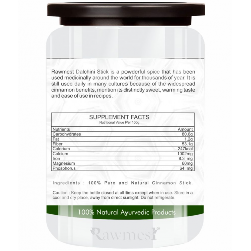 Rawmest Cinnamon Sticks is a popular spice, having a strong spicy flavor often used in cooking and baking. Its sweet and warm taste makes cinnamon a delicious addition to any dish. It has been used medicinally for thousands of years and is known for its numerous health benefits. Rawmest Dalchini Stick is a powerful spice that has been used medicinally around the world for thousands of years. It is still used daily in many cultures because of the widespread cinnamon benefits, mention its distinctly sweet, warming taste and ease of use in recipes.