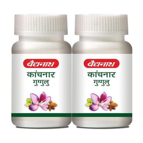 Shree Baidyanath Kanchnar Guggulu, is an effective Ayurvedic formulation helpful in hormonal imbalance, PCOS, joint pains and helps in eliminating toxins and wastes stuck in the body. Baidyanath Kachnar is loaded with ayurvedic herbs like Haritaki, Amalaki, Pippal, Kanchnar chaal etc. which makes it effective in balancing Kapha and achieve weight management goals, helps in burning belly fat and from other areas of the body by increasing metabolism and also enhance the process of digestion. Baidyanath Kanchnar also helpful in diarrhoea as it boosts the digestive fire due to its deepan (appetizer) properties, it makes the stool thick and maintain water levels due to its Grahi (absorbent) and Kashaya (astringent) properties.