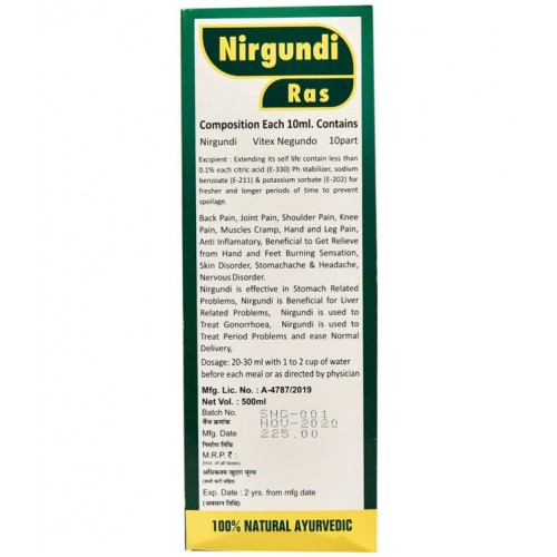 SANSU Nirgundi Ras (juice) | Hair growth | Improves entire digestive system | Immunity booster (Nirgundi Ras 500ml (pack of 2)
