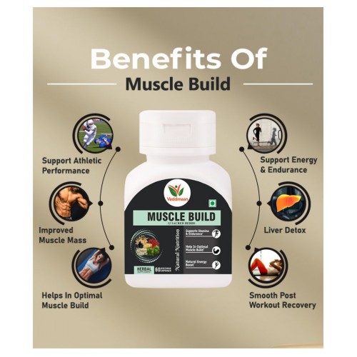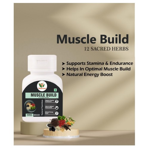 Vaddmaan MUSCLE BUILD - 12 Ayurvedic Herbs for Muscle Gain, Recovery, Mass and Improved Athletic body performance | 60 Capsules (Pack 1)