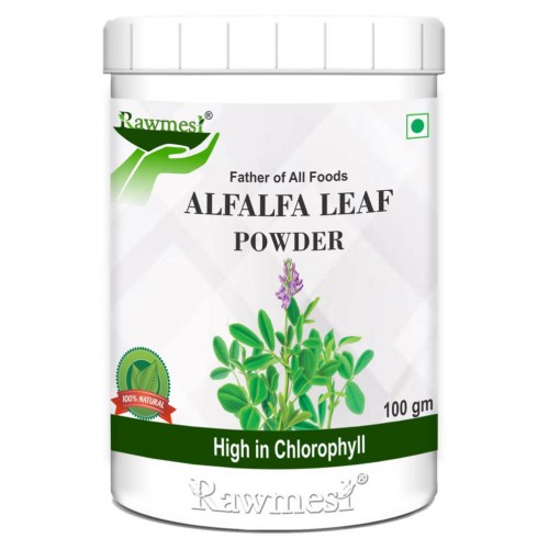 Rawmest Alfalfa Leaf Powder high in chlorophyll. Alfalfa is one of natures sauces of nutrients. It is high in chlorophyll and is rich in calcium, magnesium, phosphorous, potassium, trace minerals, enzymes and all the known vitamins, including beta-carotene, K and U.