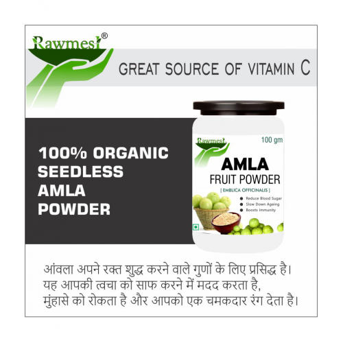 Rawmest Amla is well-known as a hair conditioner, but it also has valuable anti-dandruff properties. Amla can also be used in combination with tulsi or basil for action against dandruff and acne. Amla can be added to your home-made paste to cover grey hair. By itself, amla does not have the ability to dye hair; however, it can help tone down the red or brown colour of a henna-indigo hair colour. The extract of amla is rich. This vitamin is essential in collagen production, a compound that keeps the skin looking young and elastic.
