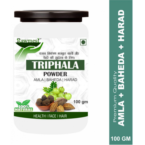 Rawmest TRIPHALA The MAGICAL COMBINATION OF 3 FRUITS The name Triphala translates into ‘tri’ meaning three and ‘phala’ meaning fruits. It comprises three potent herbal dried fruits- Amla or Amalaki (Indian Gooseberry), Bibhitaki (Belleric Myrobalan), Haritaki (Chebulic Myrobalan), in equal proportions. All three nutrient-rich herbal fruits possess significant anti-inflammatory, antioxidant and antiseptic properties. Together they act as a force multiplier to deliver a variety of health benefits.