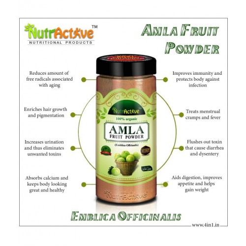 NutrActive Amla ( Indian Gooseberry) Is considered to be one of the strong rejuvenation & antioxidant herb. It supports maintenance of eyes & immune system, It may strengthen cellular antioxidant defenses. It may help smooth the stomach due to carminative properties. Ingredient :- 100% Pure & Natural Amla Fruit Powder. NutrActive Amla Fruit Powder Is for Antioxidant, Rich in vitamin C, Good For Hair & Skin, Promoted Health & Vitality.
