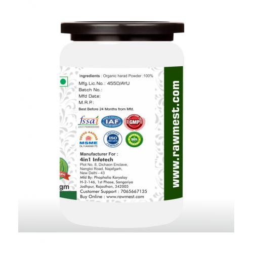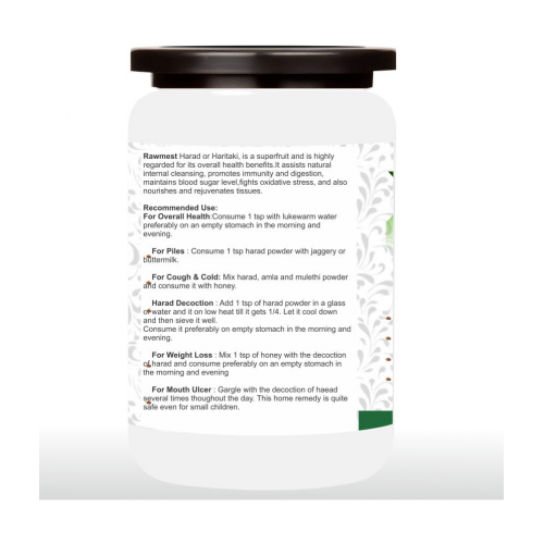 Rawmest Harad powder prevent hair and dandruff, helpful in constipation, prevents cough and cold, help in weight loss. Rawmest harad powder is a super fruit and is highly regarded for its overall health benefits. It assists natural internal cleansing , prompts immunity and digestion, maintain blood sugar level. Fight oxidative stress, and also nourishes and rejuvenates tissues.