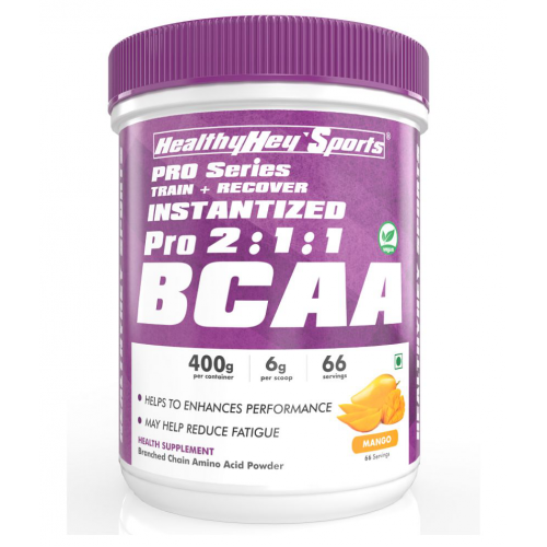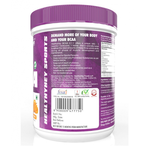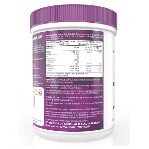 "Flavor:Mango Candy | Size:300 g HealthyHey Sports BCAA Powder 2:1:1, Branched Chain Amino Acids - 50 Servings (Mango Candy, 300 g), Assists with Muscle Repair and Recovery – BCAAs are The Key Amino Acids Necessary to Help Rebuild Lean Muscle and Reduce Soreness After a Workout."