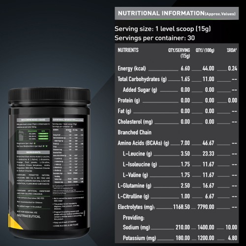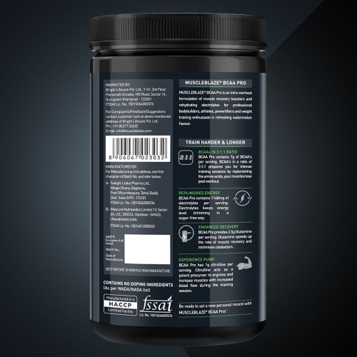 MuscleBlaze BCAA Pro is an intra-workout formulation of muscle recovery boosters and rehydrating electrolytes for professional bodybuilders, athletes, powerlifters and weight training freaks.  The unique mix of Branched Chain Aminos, Glutamine and Citrulline Malate in refreshing watermelon flavour lets you train harder and longer, without getting tired.