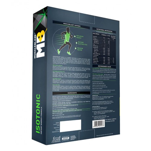 MuscleBlaze Isotonic is a scientific formulation to hydrate and energize sports persons, fitness enthusiasts and athletes. Heavy duty workouts and sports result in the loss of fluids and electrolytes, via sweat resulting in fatigue, reduced energy and less than optimum performance. The unique formulation of MuscleBlaze Isotonic is an instant energy formula that helps restore lost electrolytes and aids in speeding up recovery in athletes, sports persons and gym goersFSSAI's Initiative on Safe & Nutritious Food. Please visit https://www.snfportal.in