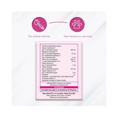 Provides synergistic combination of Calcium & Magnesium which is essential for absorption, utilization & mineralization of calcium for optimum fetal growth and development.