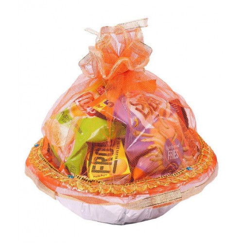 Outer Decorated with shinning paper & ribbon, inner material basket :- Heavy Duty Plastic