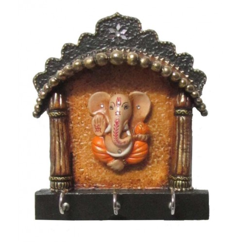 Place your keys on this key holder under the watchful eyes of the Lord Ganesha who is sitting cross legged. The key holder has three hooks for your house, car, garage and other keys. The key knobs have been carefully designed to hold your keys. This key holder can be hung at any place in your house to keep keys secured and can also be used as a wall decoration piece. It serves as a great gift, especially around religious celebrations and festivities. Each Key Holder is diligently handcrafted by skilled artisans from the house of eCraftIndia using various traditional techniques.