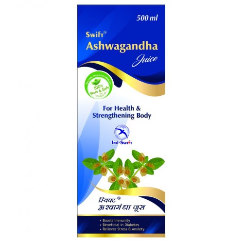 Swift Ashwagandha Juice may helps for health & strengthening body. The Main ingredient we used in the Ashwagandha Juice is Ashwagandha & Arjun Chhal. The total 9 herbs used in the Ashwagandha Juice which may helps to boosts immunity, may beneficial in Diabetes & Relieves Stress & Anxiety.