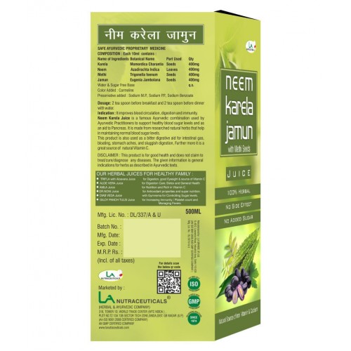 LA NUTRACEUTICALS Neem Karela Jamun Herbal Juice Liquid 1000 ml Pack Of 2