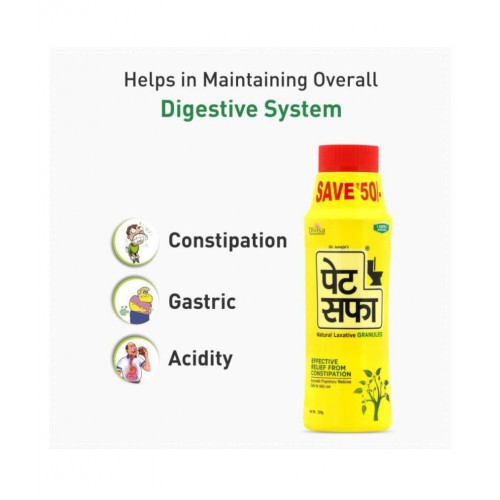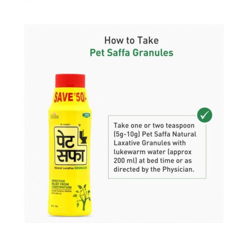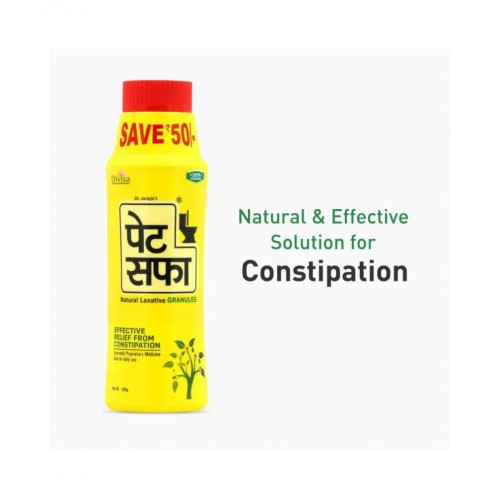 Pet Saffa, Natural Laxative Granules is the Ayurvedic based formulation to help in maintaining regular bowel movements to ensure proper cleansing of the body. Ayurvedic Pet Saffa is developed under stringent quality parameter with scientifically woven classical formulation to help in relieving from constipation.