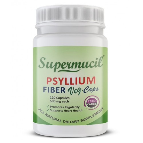 Supermucil Psyllium Veg. Capsules are widely used for healing constipation. Each capsule is of 500 mg. Content is 100% Natural Psyllium powder. Its 100% daily fiber supplement. Benefit: A Best Dietary Fiber Source Promote Digestive System Control Cholesterol Cleans Blood Veins Gluten Free Daily Fiber Supplement Best for Cleanse and Regularity