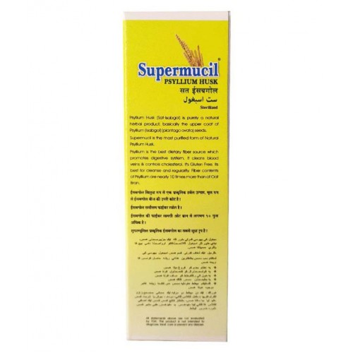 Supermucil Psyllium Husk is most purest of Psyllium or Isabgol. Psyllium Husk is used worldwide as dietary fiber supplement.Moreover, Supermucil Psyllium Husk removes constipation, reduces Cholesterol and control diabetes.