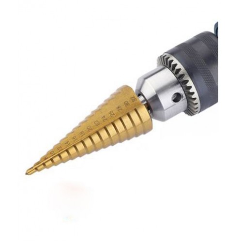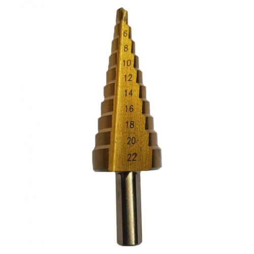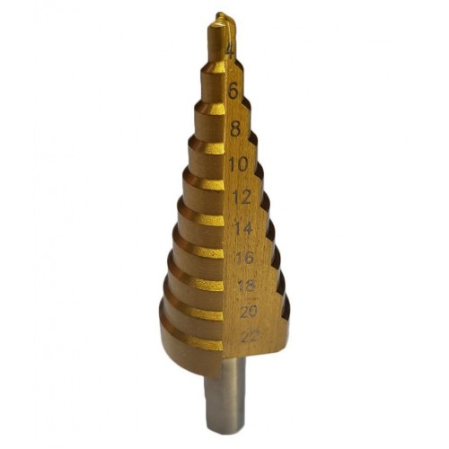 for drilling 4-22mm in all types of metal . The ladder of its unique structure, a bit can open a variety of specifications of aperture. Do not need to use center punch, compared with the ordinary twist drill is not easy to be broken. Deburring, chamfering, elliptic hole enlargement, twist drill, the function of them was unable, but it is possible. The usage of tools: drill, bench drill. Work while water cooling, can effectively extend the service life of drill bit, Shank: 1/4 Hex Shank 4-22MM