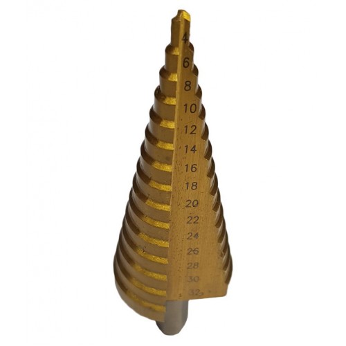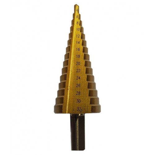 for drilling 4-32mm in all types of metal . The ladder of its unique structure, a bit can open a variety of specifications of aperture. Do not need to use center punch, compared with the ordinary twist drill is not easy to be broken. Deburring, chamfering, elliptic hole enlargement, twist drill, the function of them was unable, but it is possible. The usage of tools: drill, bench drill. Work while water cooling, can effectively extend the service life of drill bit, Shank: 1/4 Hex Shank 4-32MM