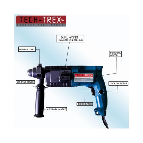 Tech-Trex - T2-20 Rotary Hammer 700W 20mm Corded Drill Machine with Bits