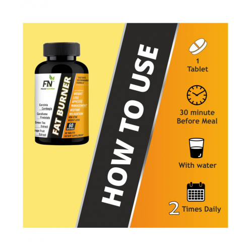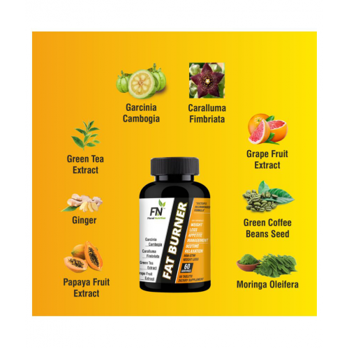 Floral Nutrition Fat Burner Advanced Weight Loss Tablet – a powerful dietary supplement that pushes the body in a state of ketosis, helpful to burn extra body and belly fat naturally. FN-Fat Burner Tablet for weight loss are enriched with the synergistic power of 14 natural ingredients like Caramulla Fimbriata, Green Tea & Coffee Beans, Garcinia Cambogia, Moringa Oleifera, Papaya Fruit extract, Bromelain and Grape fruit Extraxt – all known to minimize excess Body’s Fat storage. But how it works? The ketosis state achieved as a result of consuming Garcinia Cambogia and Green Coffee lowers down blood ATP levels and substitute fat for the same, meaning the body starts using fats to generate energy and perform other Vital Body functions. A toned, active, and energetic body! What’s more? The consumers who use FN- FAT BURNER Advanced in their routine daily life have reportedly witnessed less frequent food Cravings, better Nutrient absorption, and more energy. So, for best results, Take 1 FN-Fat Burner Tablet 30 minutes before meals 2 time daily with lukewarm water and do not forget take your Breakfast and Lunch after taking FN Fat Burner or as directed by a dietitian.