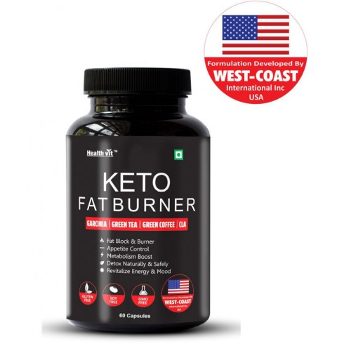 Healthvit Keto Fat Burner FORMULATED IN USA With Garcinia, Green Tea, Green Coffee, CLA 60 Capsules This Keto Fat Burner’s unique ingredient that immediately puts your body into Ketosis, removing all of your excess weight. Our Healthvit KETO Fat Burner is manufactured under GMP standards, FDA Certified and FSSAI approved. Healthvit Keto Fat Burner is a natural slimming formula- designed to give you maximum fat metabolism, fat elimination &fat termination. Each capsule contains an effective dose of the most powerful thermo fat-burning ingredients. Garcinia Cambogia and Piperine extracts helps aid digestion, limits fat formation & prevents fat storage. Green Tea Extract & Caffeine may help boost metabolic rate & improve mood. Green Coffee Bean Extract helps to lose weight quickly without any diet or exercise. CLA increases fat burn by boosting the metabolic rate. P1: SUPPORTS HEALTHY WEIGHT LOSS: KETO is a fat‐burn system that merges the synergistic power of 4 fat burning ingredients. Thermogenic ingredients in this concentrated proprietary formula are scientifically proven to boost your metabolism so that you burn calories and fat quicker. P2: ENHANCE ENERGY AND FOCUS: Ketosis is a state that your body enters to uses excess fat for energy instead of carbohydrates. This results in rapid removal of excess weight, and also increases energy, reduced hunger and appetite, better mental focus. While still eating your favorite foods. P3: ENERGY BOOSTER: Ketosis is a state that your body enters to uses excess fat for energy instead of carbohydrates. This results in rapid removal of excess weight, and also increases energy, reduced hunger and appetite, better mental focus. While still eating your favorite foods. P4: PROMOTES HEALTHY METABOLISM: A fast, healthy metabolism is Key to losing out. Our Product supplement works with your body to help boost your metabolism. So, you burn more calories and lose more weight. It acts as a brain energy supplement too. So when you buy this blend you get both a weight loss supplement and also a supplement for brain energy. You can only get better using this blend. Ingredients: GARCINIA, GREEN TEA, GREEN COFFEE, CLA Suggested Use: As a dietary supplement, take 2 capsules a day before meal, or as directed by a healthcare practitioner.