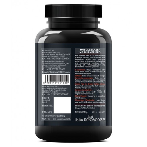 If you are looking for some quick help with fat burning? MB Burner Pro is your best bet to burn that stubborn fat deposited on your body and attain a lean physique. This revolutionary weight loss formula is packed with ingredients that enhance the fat-burning capacity of your body by boosting your metabolism. It contains caffeine, black pepper extract, green tea & green coffee bean extracts, carnitine, Garcinia Cambogia, chromium picolinate, and coleus forskohlii in pertinent quantities to suppress appetite, boost metabolism, and support fat loss.