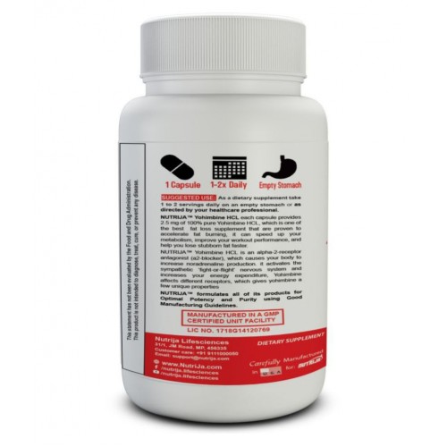 - NUTRIJA™ Yohimbine HCL each capsule provides 2.5mg of pure Yohimbine HCL (Pharmaceutical & USP Grade) which is one of the best fat loss supplement that are proven to accelerate fat burning, it can speed up your metabolism, improve your workout performance, and help you lose stubborn fat faster.