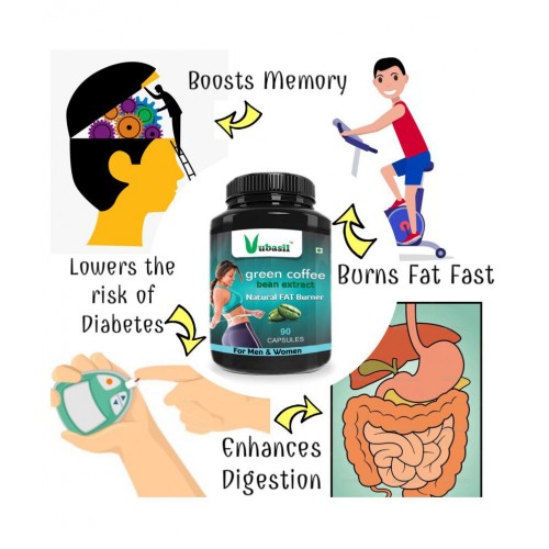 HUNGER SUPPRESANT: Vubasil Green Coffee Bean Extract is a proven weight management supplement and huger suppressant. This is a great way to kickstart your weight management goals and lifestyle changes. It controls craving for food and averts us from overeating. It also boosts energy. HIGH IN CHLOROGENIC ACID: Our Green Coffee Bean Extract is 100% pure with the Green Coffee Antioxidant (GCA) that is standardized to 50% chlorogenic acid. This compound gives coffee many of its health benefits, but the roasting process reduces the amount NATURAL & SAFE WAY TO LOSE WEIGHT: It perks up the burning metabolism of our body so that we can burn out unwanted fat and calories naturally. REDUCE FREE RADICALS: The antioxidant properties in Green Coffee Bean Extract can help reduce free radicals in your body. It protects body cell from oxidative damage, protects skin, prevents premature aging and improves brain function. It perks up the burning metabolism of our body so that we can burn out unwanted fat and calories.
