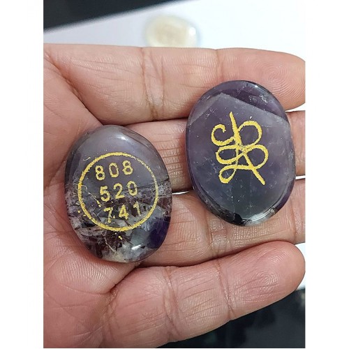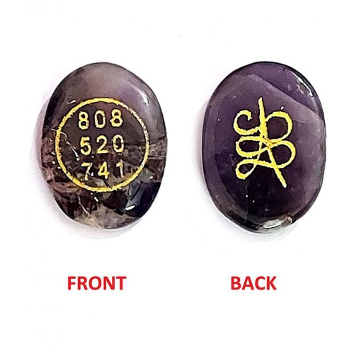 Zibu Wealth And Prosperity Angel Symbol Engraved Natural Amethyst Crystal Cabochon For Reiki Healing - Size :- Approx 35 X 25 Mm. For All Chakras And Zodiacs. One Side Of The Crystal Number Is Printed And On The Other Side Symbol Is Printed. Material Used :- Natural Amethyst Crystal. Quantity :- 1 Front & Back Printed Amethyst Oval Cabochon. Zibu Wealth And Prosperity Angel Symbol Engraved Natural Amethyst Crystal Cabochon For Reiki Healing :- It Is Believed That *808 - Angelic Number To Take Care Of Your Finances* *520 - Means Unexpected Money* *741 - Immediate Solution And Speeds Up The Process* Along With *Zibu Prosperity Angel Symbol On The Other Side.* *Uses* #Carry With You Everyday. #Keep In Your Cash Box. #Money Healing Keep On U R Photo . #Money Grid. #Money Prosperity Spell. #On Shop Cash Counter . #Under Your Pillow . # Best Gift For Your Loved Ones . One Side Of The Crystal Number Is Printed And On The Other Side Symbol Is Printed.