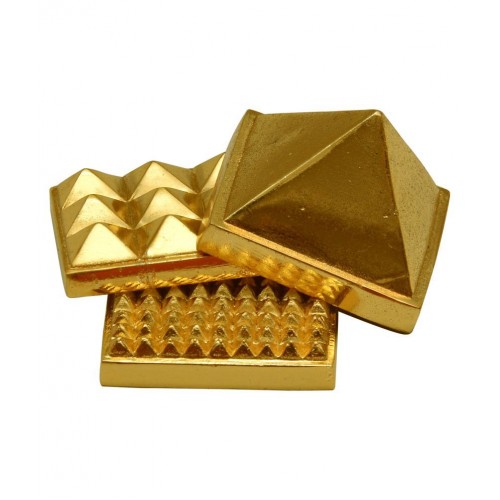 3 PIECES VASTU PYRAMID TOTAL 91 PYRAMIDS... FOR VASTU CORRECTION AND OVERALL PROSPERITY Benefits/Uses: Use of pyramid is a practical art to harmonize-mind, body and spirit with the environment. By just placing this pyramid at appropriate locations, you can achieve health, happiness and prosperity. Uses of Pyramid Set:- 1. If you are making a new house, place 8 pyramid set at all eight direction & 1 at the centre of the house. 2. Incase of existing house, place Brass pyramid in the floor near the main door to attract auspicious energy and save the house from evil eyes. 3. In case of vastu defect place it in the North-East corner of your house or in the alter(prayer) room. 4. Students can place the Brass pyramid on their study table to get good academic result. 5. Incase of iplace the copper pyramid on all the important machines. This will help in reducing the maintanance cost of machinery. Production will also improve. 6. Incase of farmhouse, resort etc., copper pyramid can be installed in all 8 direction with 1 in the centre. 7. At work place keep it on the working table & you will find yourself more confident and energetic Above suggestions are made based on vastu/pyramid mythology. This 91 pyramid set , which consist of 91 pyramids in total and is to be kept in the living room or bed room to keep your room energized. If your room has beams (wooden or iron), then we strongly recommend you to keep it below the beam to neutralise the negative effect of the beam in your room. You can also place this 91 Pyramid set in the dark corner of your room to conserve the energy of the region. You can keep this pyramid on your office table and this would enhance your energy levels and you would feel full of energy for the whole day. The 91 pyramid set is made up of the holy metal and is very useful in conserving energies and is very useful tool to be used in house, factory or office.