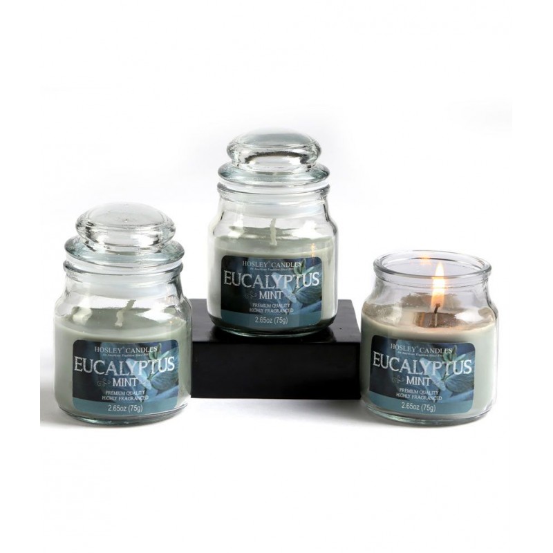 Hosley Grey Set Of 3 Eucalyptus Mint Small Jar Candles