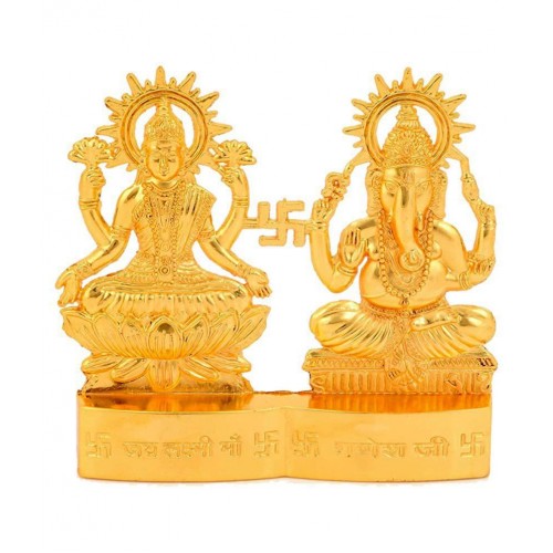 ST Collections presents Beautiful Hand Carved Solid Metal Hindu God Goddess Set of Ganesh and Lakshmi in sitting position (Gold in colour). Size: Length 10.0 cm x Height 10.0 cm (Laxmi Ganesh) | Weight: 70 gm | Materiel: Metal Made from Quality Metal and Handmade in India. Gorgeous Hand work and perfect showpiece of Indian Handicrafts, Beautiful Puja Idol for Home & Office. Religious Spiritual Idols Showpiece Placed in Home, Office, Drawing / Living & Pooja Room brings Wealth, Health, Peace and Happiness. Spiritual Lucky Gift, Thanksgiving Gift, Diwali gifts, Birthday Gift, Wedding Gift