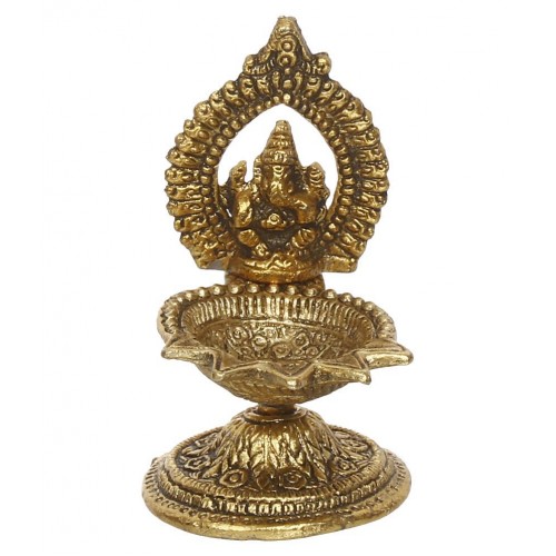 eCraftIndia present to you, the God of Intellect, Lord Ganesha, on a shimmering metal showpiece having diya. Keep it in your pooja room or gift it to your friends and family, the blessings will always touch the soul of the beholder. This metal lord ganesha statue has been diligently handcrafted by skilled artisans from the house of eCraftIndia using various traditional techniques.