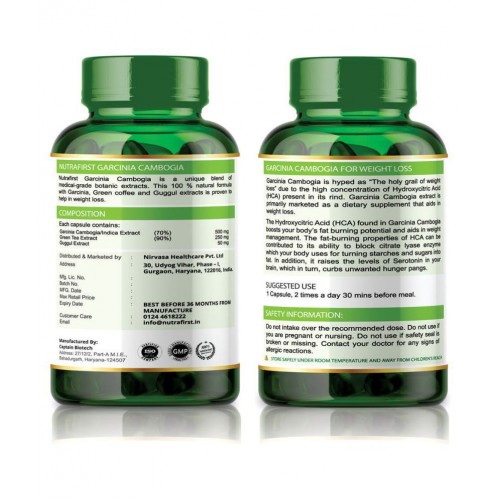 Nutrafirst Garcinia Cambogia capsules are all natural, 100% Veg & perfect for weight management. Garcinia Cambogia extract or HCA is a dietary supplement that is derived from the fruit of the same name. In the recent past, it was titled as “the holy grail of weight loss” due to its fat-burning properties. Apart from this, it has gained tremendous popularity for numerous other health benefits including its ability to boost immunity, improve digestion and many more. When paired with a healthy diet and workout routine, this appetite suppressor triggers instant weight loss without interfering with your energy levels.